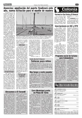 trabajo de reforzamiento y En ediciones pasadas ción Turística de Colonia, puerto de Colonia es el prin- la Escuela Técnica en el mayores de 18 años el plan