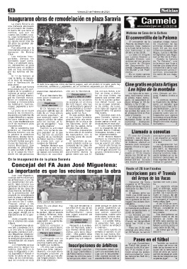 me del Concejo Munici- Fue el intendente Mo- Dos anuncios: tar los días lindos, me taña, documental sobre guay, Estados Unidos e