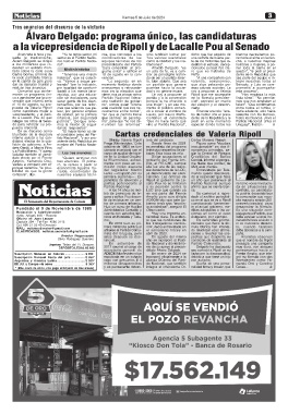 a la vicepresidencia de Ripoll y de Lacalle Pou al Senado