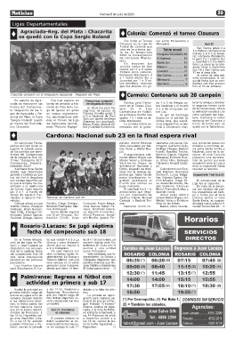 Horqueta Wanderers 3 San Carlos ............. 10 Al cierre de esta edi-