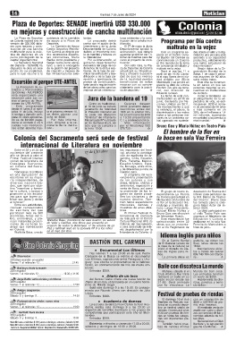 de Colonia recibirá una in- de apoyo a la Plaza de La propuesta debió trucción de la cancha mul- Programa por Día contra