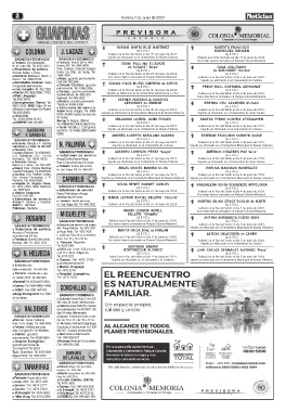 SÁBADO 8 Y DOMINGO 9 SÁBADO 8 Y DOMINGO 9 Sus restos fueron cremados en Parque Colonia Memorial.