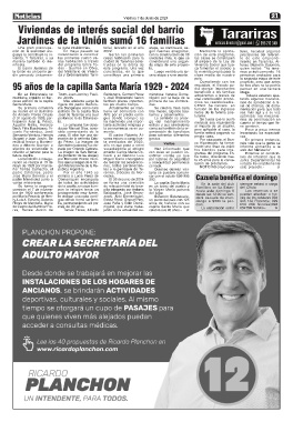 la Unión es un barrio jar- del Ministerio de Vivien- concluidas, en lo que Luego vendrá una ter- la vivienda propia para la mos prácticamente 16
