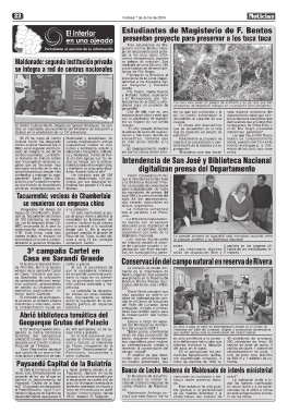 meses evalúa el impacto de Paso de los Toros, ciudad ubi- Biblioteca Nacional. La pasada semana se suscribió este novedoso acuerdo entre