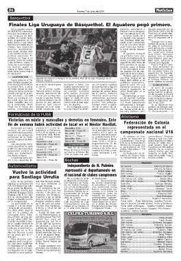 ronda 5 y 6 se desa- rán las dos carreras, impuso en la final por 15 Pelotaris de Treinta y Tres Posta 5x80 combinada..... Martina Perdomo, Mateo