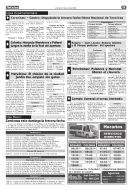 rariras y Centro tuvo ras 5 – Nacional de Om- riras 2, Pompeya 1 a 0 sobre Plaza y Peñarol(Omb) .......... 6 Nacional(Tar)............ 7
