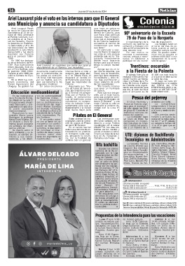 nomista María Laura ción organizadora, Pa- Pilates en El General pesca del pejerrey. Los premios serán