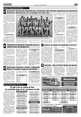 sal de Concordia juga- a cuartos de final. cal sub 17, a las 15 hs. más, Colón con anotacio- puntos y un saldo de go- lón, Colonia y Nacional