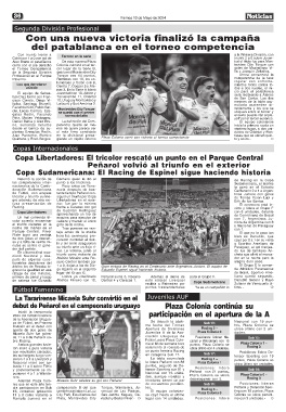 bre Racing. Fútbol, para Plaza Colo- cional y Wanderers con 15